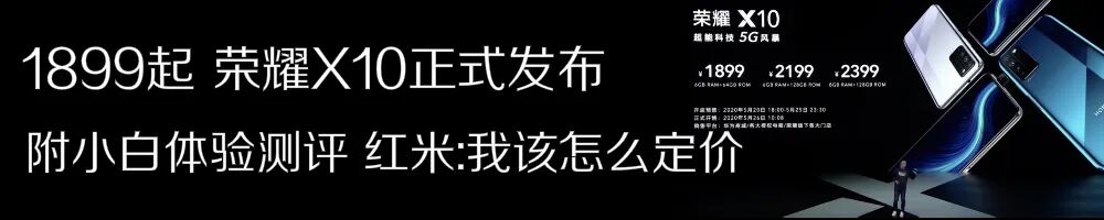 至于价格,Redmi 10X系列分3款型号,4G版是联发科G85,所以猜测可能是999左右起售;至于Redmi 10X 5G版,其首发搭载的天玑820跑分超麒麟820,但荣耀X10有高刷,所以鉴于荣耀10X 6+64GB是1899元,如果Redmi 10X 5G版想一争性价比,真正做到“5G普及”,或许最低配会来个1500档位?🤔