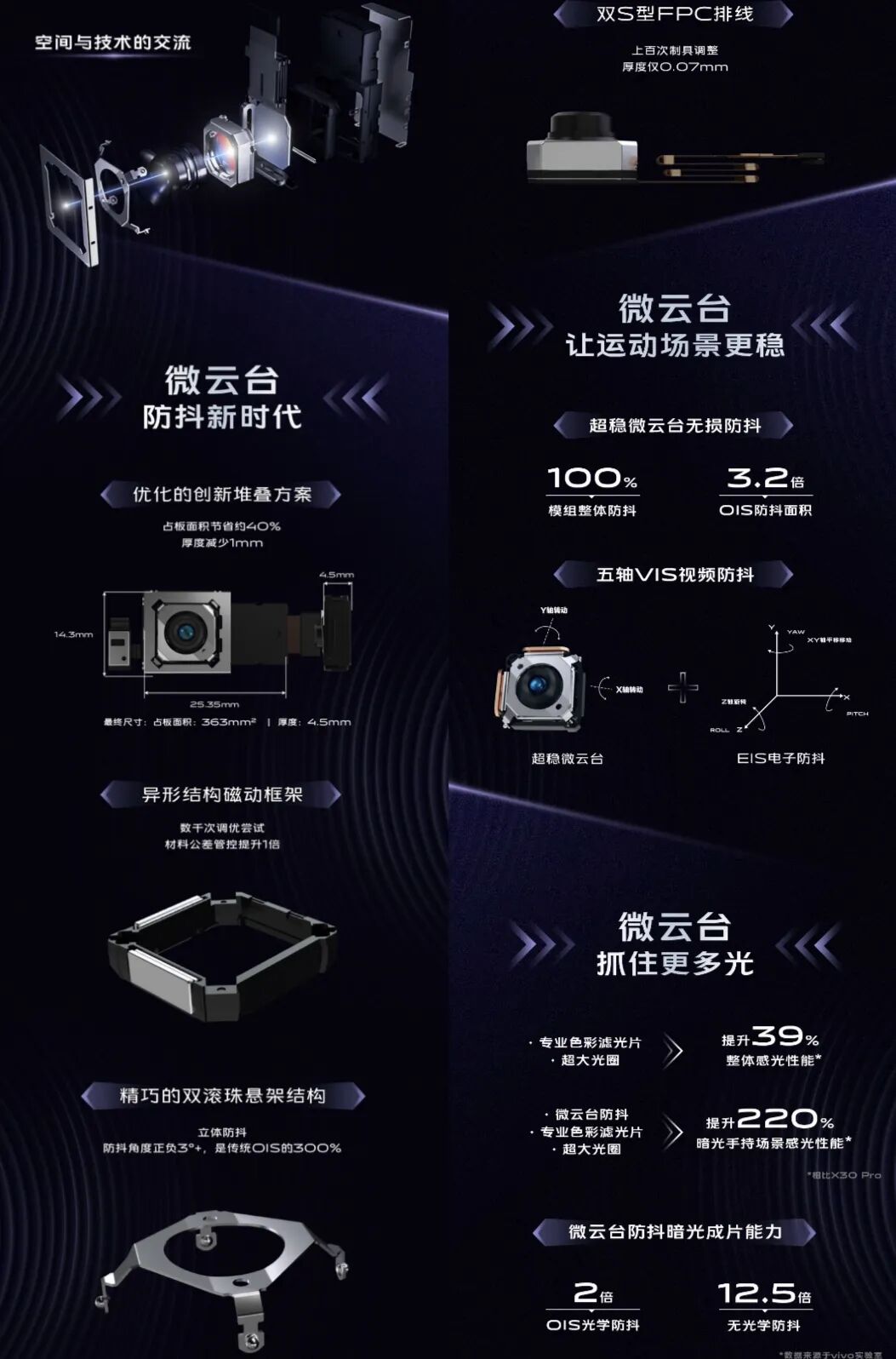最后再来聊聊vivo X50 Pro这颗微云台主摄,据了解,手机内置微云台这个概念最早于今年2月28日发布的vivo APEX 2020概念机呈现,其后置双摄一方一圆,圆形那颗48MP主摄内置微云台稳定结构,官方表示微云台可实现多个方向的光学防抖,比普通OIS提升了200%的防抖角度,可以有效延长曝光时间,夜拍更强。