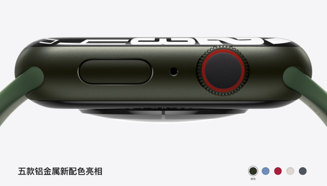 机身设计上,Apple Watch S7系列铝合金金属款提供绿色(应该也是Apple Watch首次采用绿色机身)、蓝色、红色、星光色、午夜色5个配色版本;不锈钢款提供银色、石墨色、金色3个配色版本;钛金属款提供钛金属和深空灰2个配色版本 等。