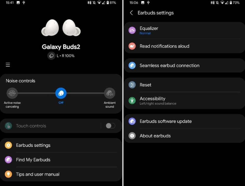 功能上,相关界面显示三星Galaxy Buds2支持主动降噪,以及单击、双击、三击、长按多种操作,降噪具体有开启、关闭、环境音三个选项,电池容量为61 mAh,耳机盒电池容量为472mAh。