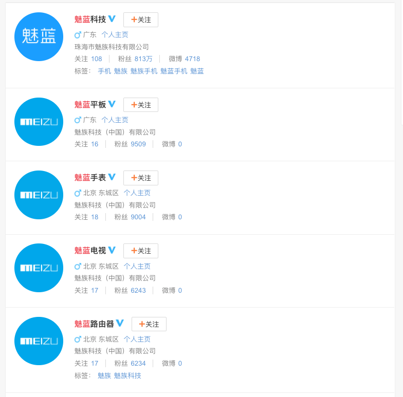 而搜索魅蓝发现,其还注册了魅蓝平板、魅蓝手表、魅蓝电视、魅蓝路由器等多个官方微博名,或许魅蓝品牌还打算做更多品类的产品?