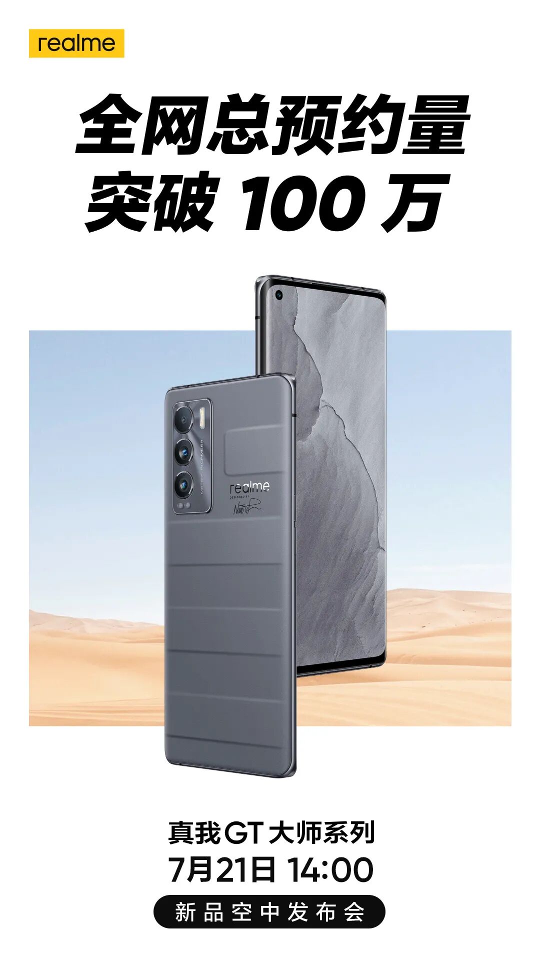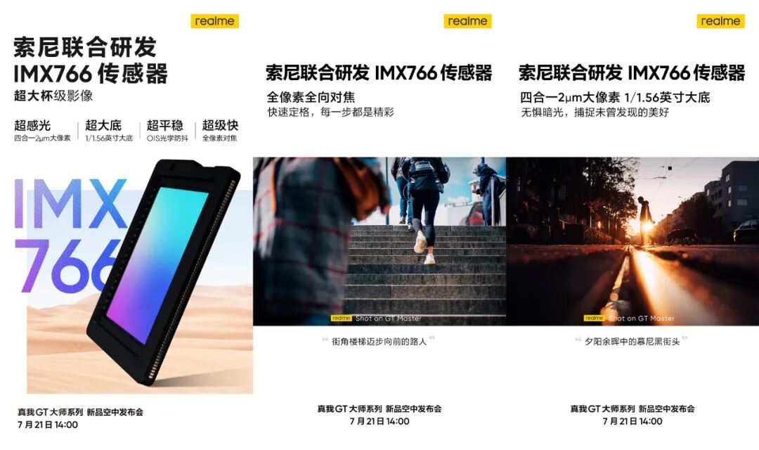 realme真我「GT大师版」和「GT大师探索版」两款新机将于7月21日即本周三也就是后天下午14点发布,「GT大师探索版」显然是主推,今天相机卖点和价格也有所信息。