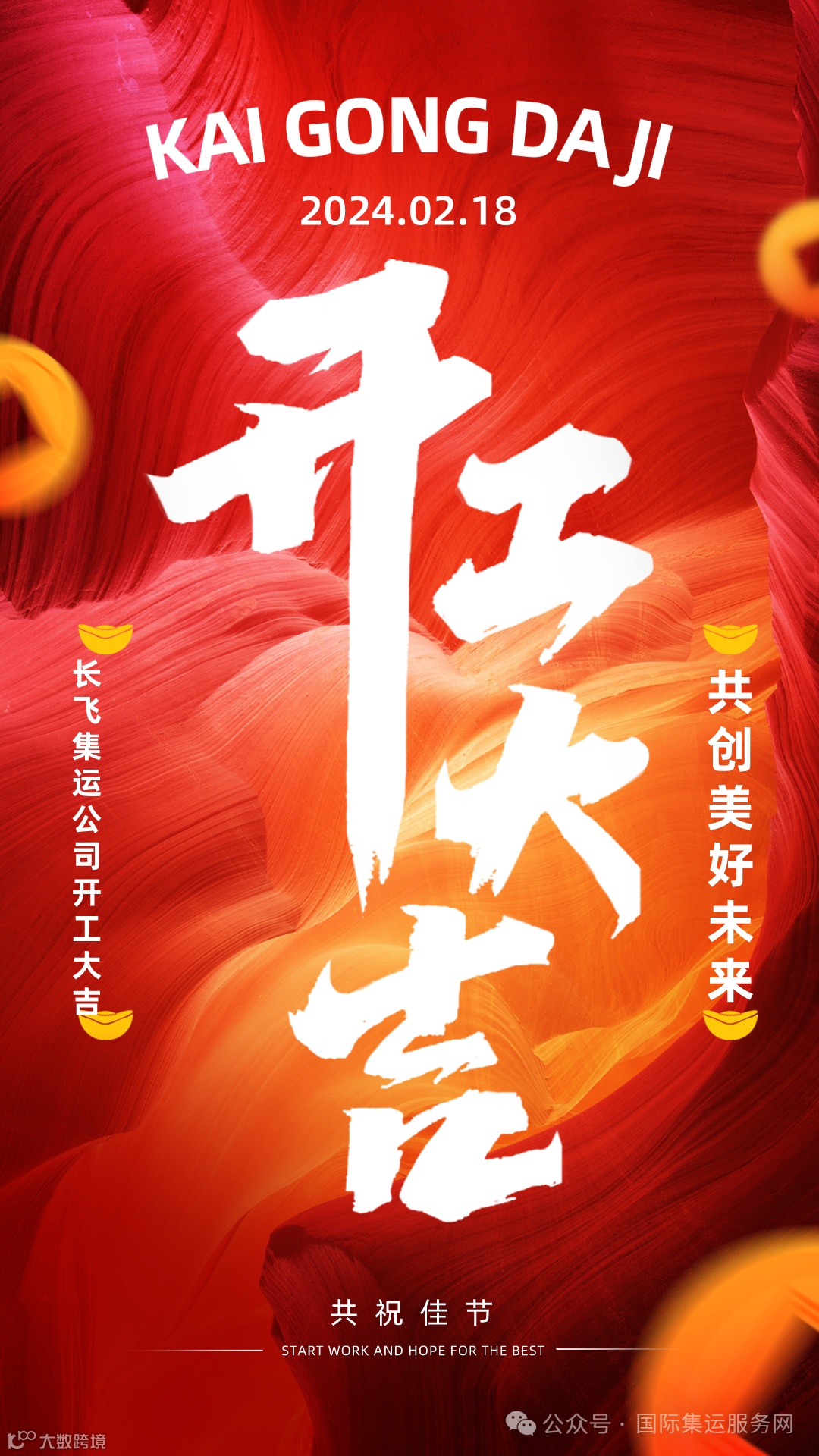 长飞集运,开工大吉!愿你的事业蒸蒸日上,财源广进;愿你的团队团结协作,共创辉煌;愿你的生活充满幸福与快乐。