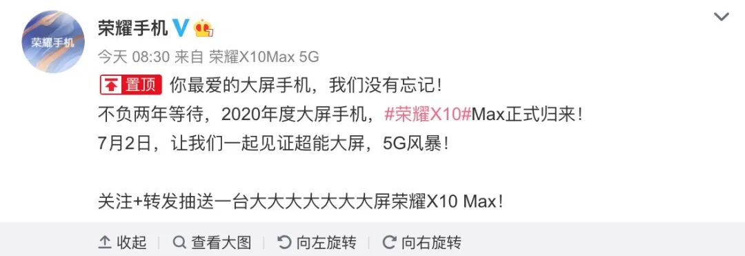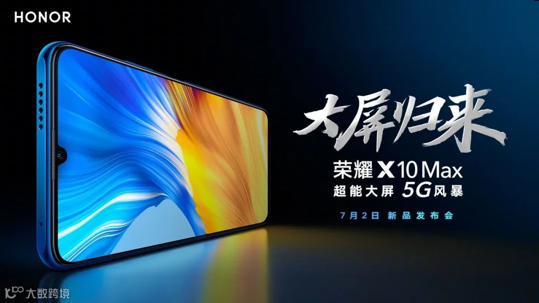 最后是一款新机的消息,今天上午,荣耀官方正式宣布 大屏系列回归:荣耀X10 Max将于7月2日发布。