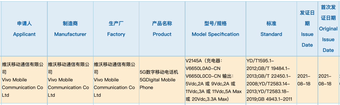 如上图所见,型号为V2145A的vivo 5G新机于8月18日获得3C认证,其配备最高66W充电器, 但据了解其只支持55W有线充,同时还配备了50W无线充电。核心配置上,据了解,vivo X70 Pro+将搭载高通骁龙888 Plus处理器。