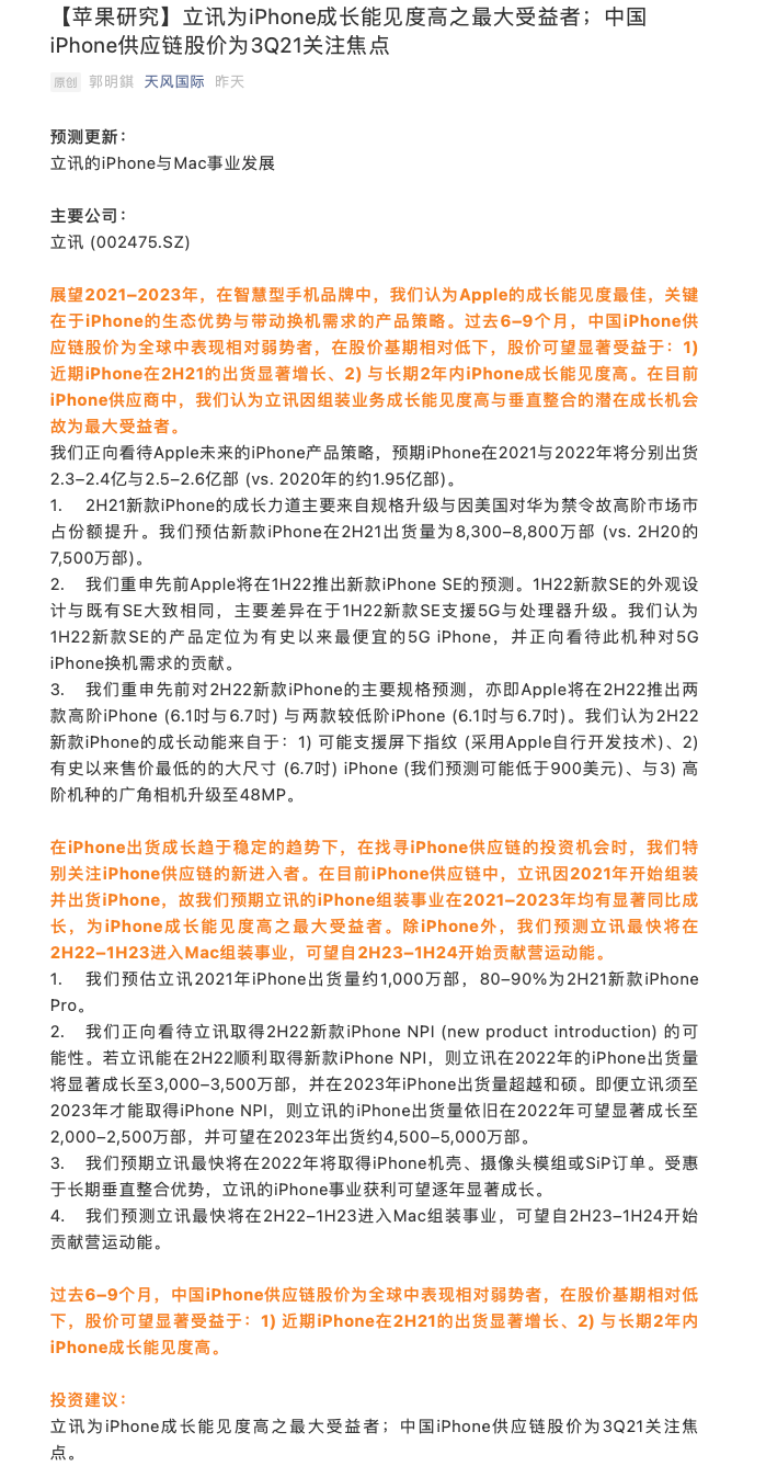 与其相信微博热搜,还不如相信分析师郭明錤的预测报告