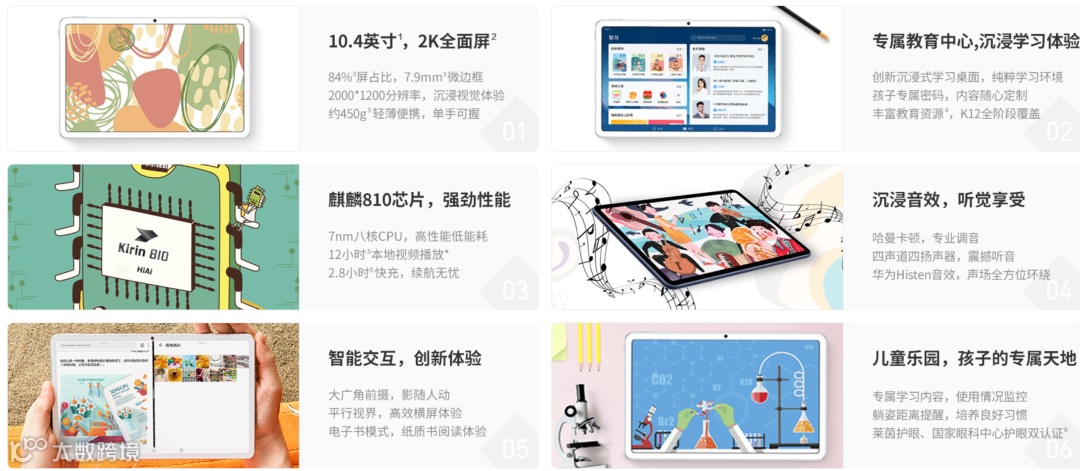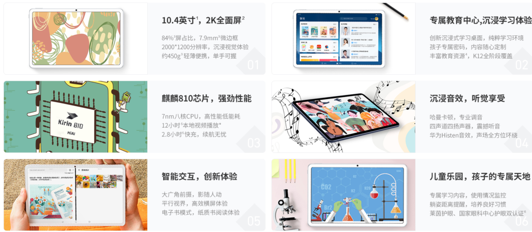 核心配置上,华为新款MatePad搭载麒麟810,大振幅四扬声器,哈曼卡顿调音,内置7250mAh电池容量,18W快充,支持手写笔,与有道精品课、学而思网校等1000+教育APP合作生态,首发华为教育中心,支持智慧分屏、平行视界、多屏协同等。(有爆料称该款平板的5G版也在筹备中~)