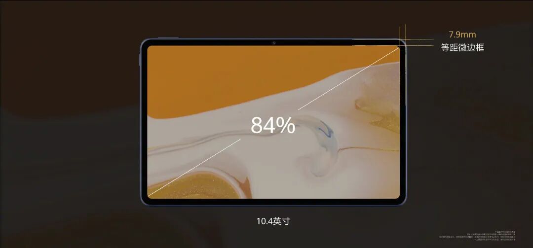 参数上,华为新款MatePad采用10.4英寸2000*1200分辨率屏,边框7.9mm,屏占比84%,机身三围245.2*154.96*7.35mm,重450g,提供贝母白、夜阑灰2个配色,前置107°大广角8MP,后置8MP。