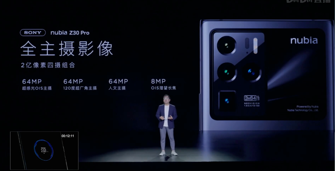 影像是主打卖点,努比亚Z30 Pro前置1600万像素,后置主打全主摄影像2亿像素四摄组合:①6400万像素 ois+②6400万像素超广角+③6400万像素人文主摄+④800万像素潜望长焦 有ois,支持5倍光学变焦 最大50倍变焦,这次还有一个专门的「星空模式」,主打手持拍星轨(差不多AI星轨的意思)。