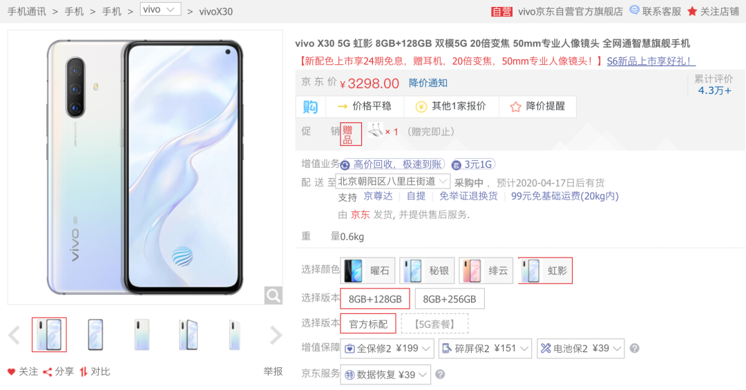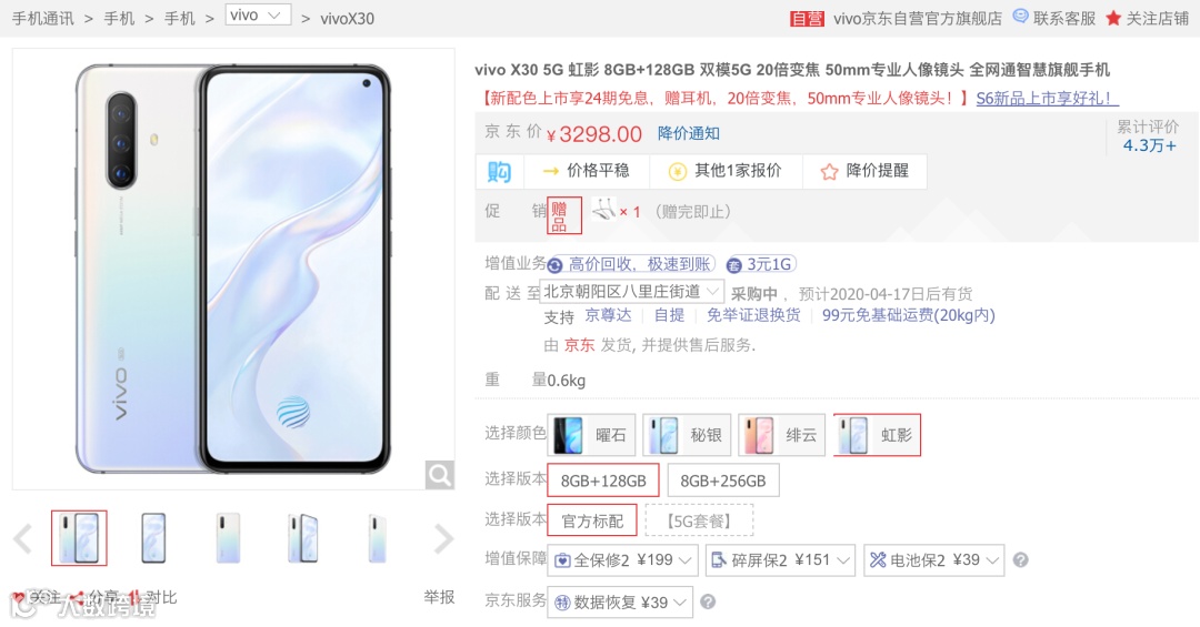 价格上,vivo X30新增的「虹影」8+128GB售价3298元,8+256GB售价3598元,支持24期免息,将于4月17日上午10点正式开卖。