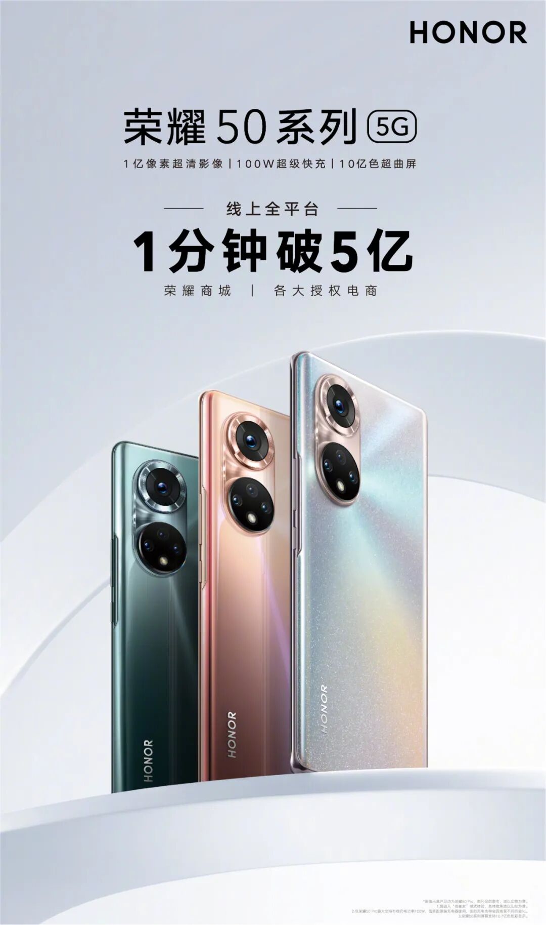 【行情】荣耀50/Pro首销 官方战报出炉:线上1秒破5亿元