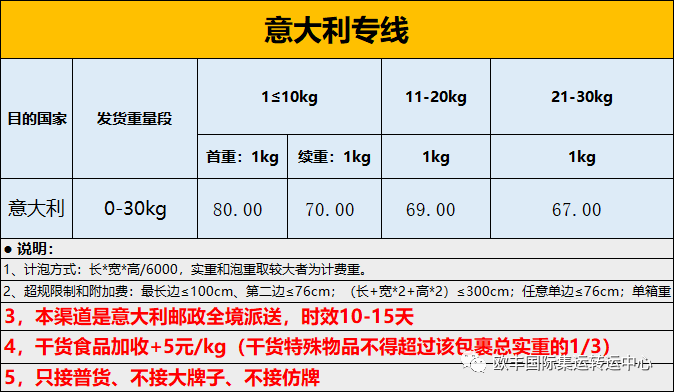 导读:欧洲普货、普货促销、全面下调新推出意大利直发专线,可接干货整箱1/3,所有带液体不接,(例如;干脆面