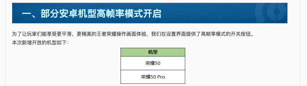 关于早前发布的荣耀50系列虽然发布会上展示了王者荣耀表现,但并未出厂即支持王者荣耀90帧,今天终于等到了。