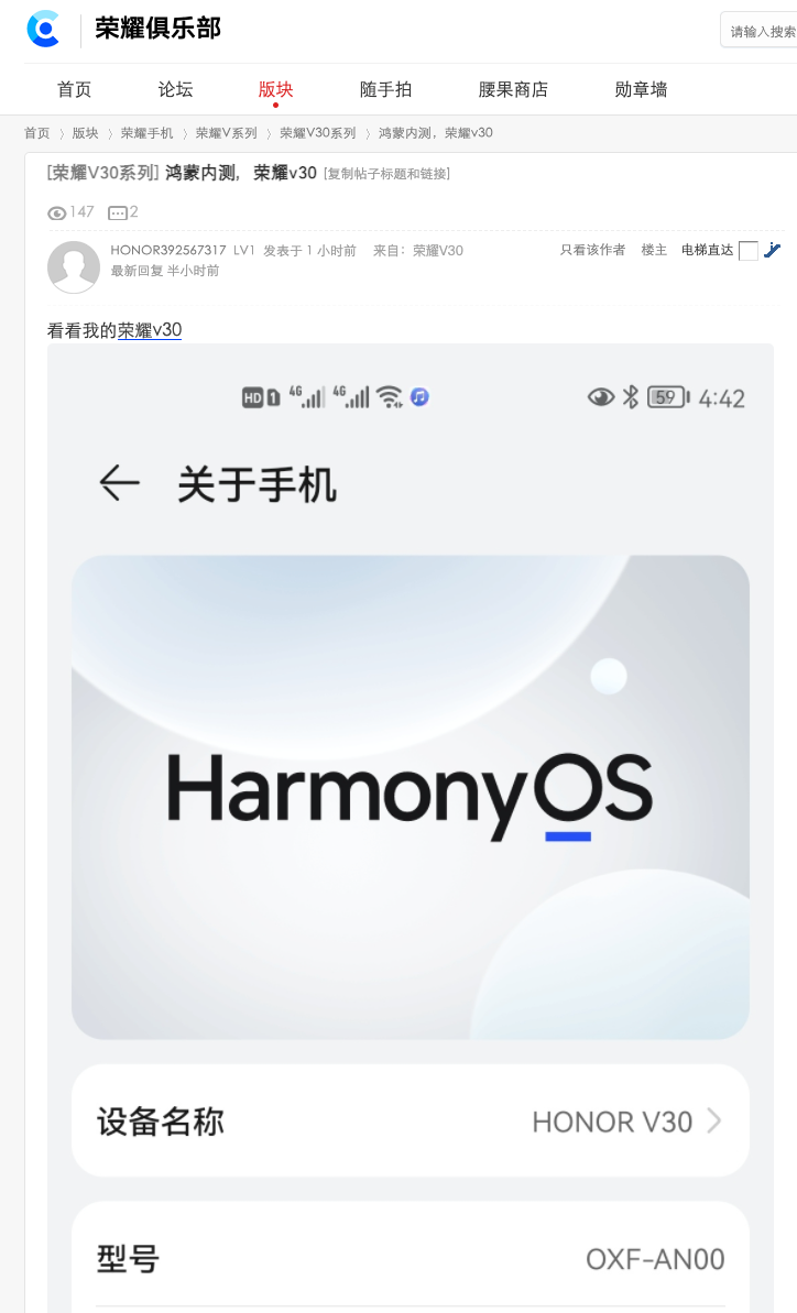 另据荣耀俱乐部的网友反馈,部分申请了HarmonyOS内测的V30系列和Magic2用户已经收到了HarmonyOS的安装包。不知道大家有没有申请的,情况如何了?