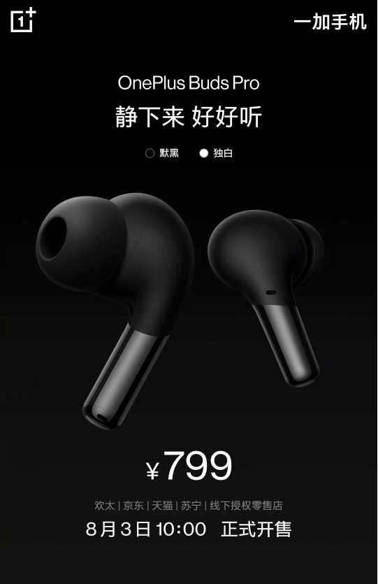 据了解一加Buds Pro国行售价799元,首销价749元,将于8月3日上午10点正式开售。