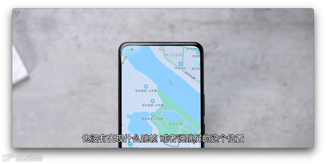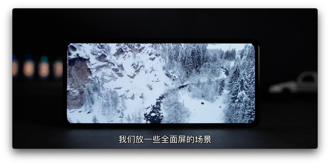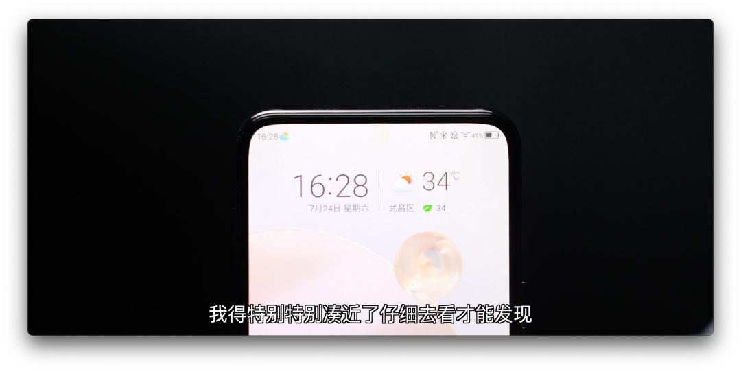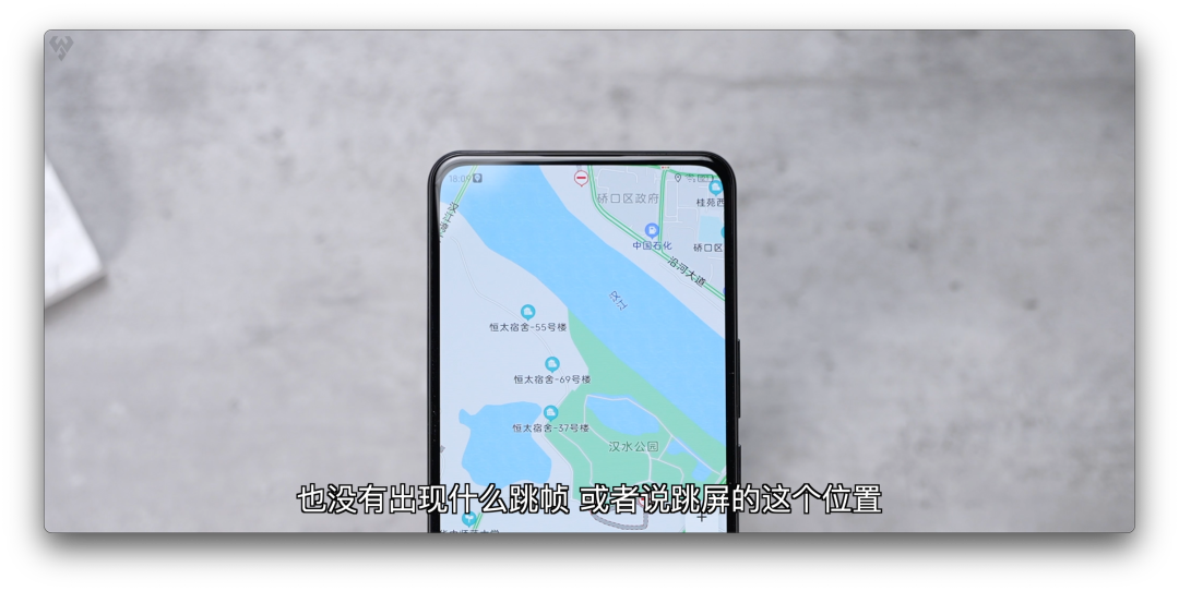 实测几个显示场景:①黑色壁纸、②随机切换了一张渐变色壁纸,前置的屏下显示区域都看不明显;③打开地图导航使用,全面屏看地图非常爽,没出现什么跳帧、闪屏现象,日常几乎感知不到;③看小白测评频道的21:9比例的视频,全面屏看视频完全没有遮挡,当然了如果仔细看那块估计会注意到一点。