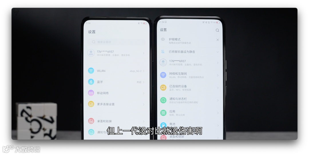 我们直接拿上一代来对比,设置浅色壁纸、亮度直接拉满,得特别特别凑近了仔细去看才能发现,屏下摄像头显示区域有一个小小的方块,跟其他的颜色有些许的差别,当然这是一个非常极端的场景了。当亮度调节到正常使用手机的一个情况,其实就很难看出来了。和上一代放一起,真的是没对比就没伤害。