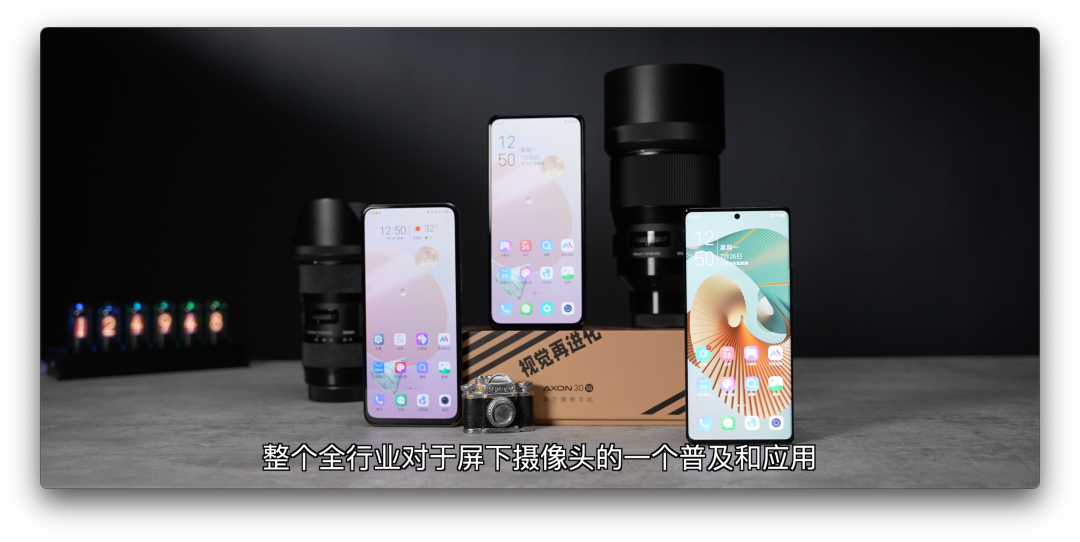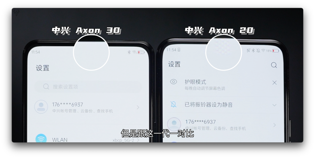 从全面屏时代开始,大家都朝着更高的屏占比不断努力,陆续涌现了刘海屏、水滴屏、挖孔屏等等屏幕形态,无论是哪种最终都是朝着减小前置占用面积而努力的,这是我们这个大目标啊。现在来看,最理想的状态就是把前置摄像头隐藏在屏幕下面。各家厂商其实都在非常积极地布局屏下摄像头,中兴这边是绝对的先行者,我们想找对比对象都没有,只能跟它自己上一代Axon 20来对比。