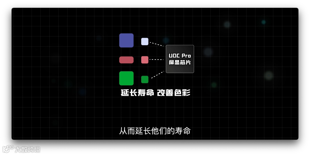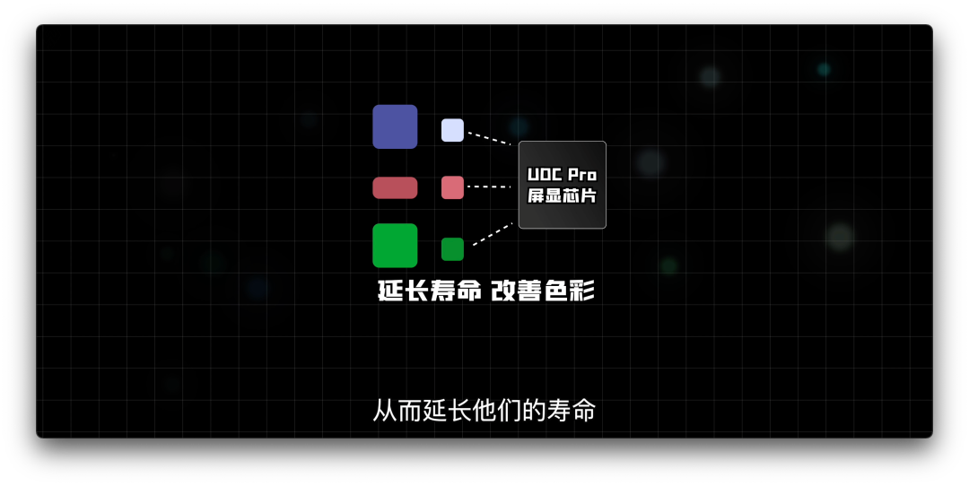 由于屏下区域的子像素大小和其他区域大小不一样,为了对它们进行更好的控制,Axon 30这次上了独立的UDC Pro屏显芯片,它能够分别对每个像素进行一一对应的调整控制,对它们进行任务分配,安排它们分别显示什么样的亮度和色彩,从而延长它们的寿命,提升显示效果。