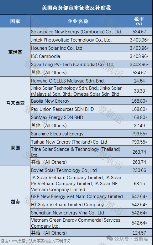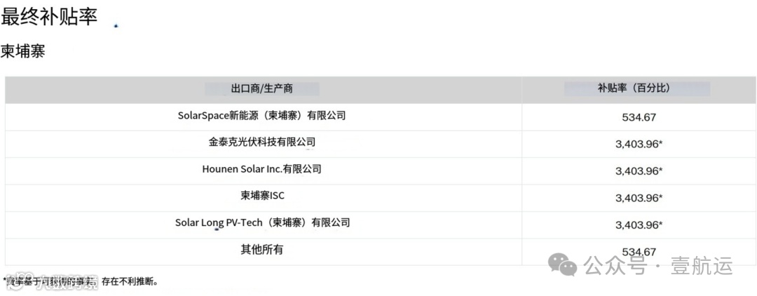 其中,对越南出口企业平均征收的反倾销税为271.28%,而多家柬埔寨企业被裁定加征的反补贴税甚至高达3403.96%