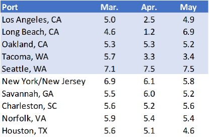 5月份美西港口延误激增