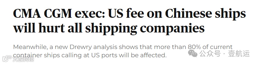 近日,全球第三大集装箱航运公司、法国达飞轮船(CMA CGM)发出警告称,美国提议对中国制造的集装箱船征收新的港口费,这一举动将对整个行业和所有航运公司造成严重打击。