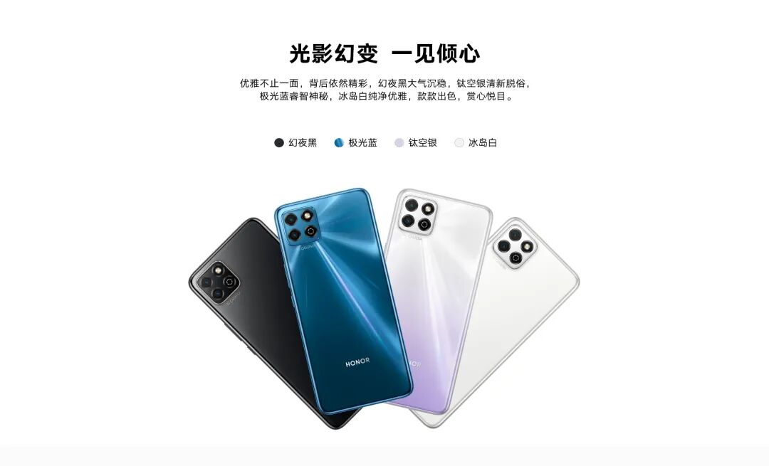 幻夜黑、极光蓝、钛空银、冰岛白4个配色,机身厚8.95mm,重198g。