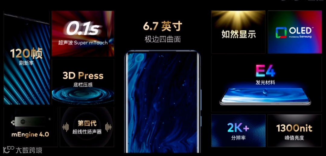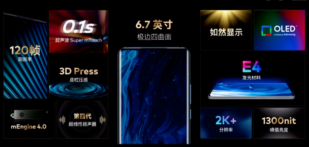 外观ID上,魅族18采用6.2英寸3200*1440分辨率20:9的居中单挖孔曲面屏,三星AMOLED钻排,局部峰值亮度1300nit,120Hz屏幕刷新率+240Hz触控采样率,HDR10+认证,563PPI等,高通第二代超声波屏下指纹。