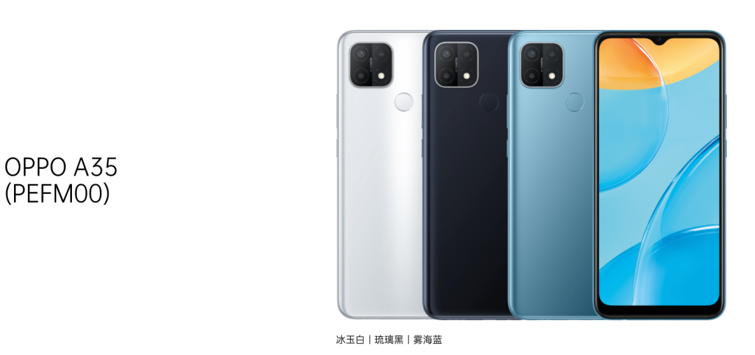 如上图所见,OPPO A35首销于4月16日,采用6.52英寸1600*720P分辨率的LCD水滴屏,后置指纹,前置800万像素,后置三摄1300万+200万微距+200万虚化,机身三围164*75.4*厚7.9mm,重177g,内置基于Android 10的ColorOS 7.2。