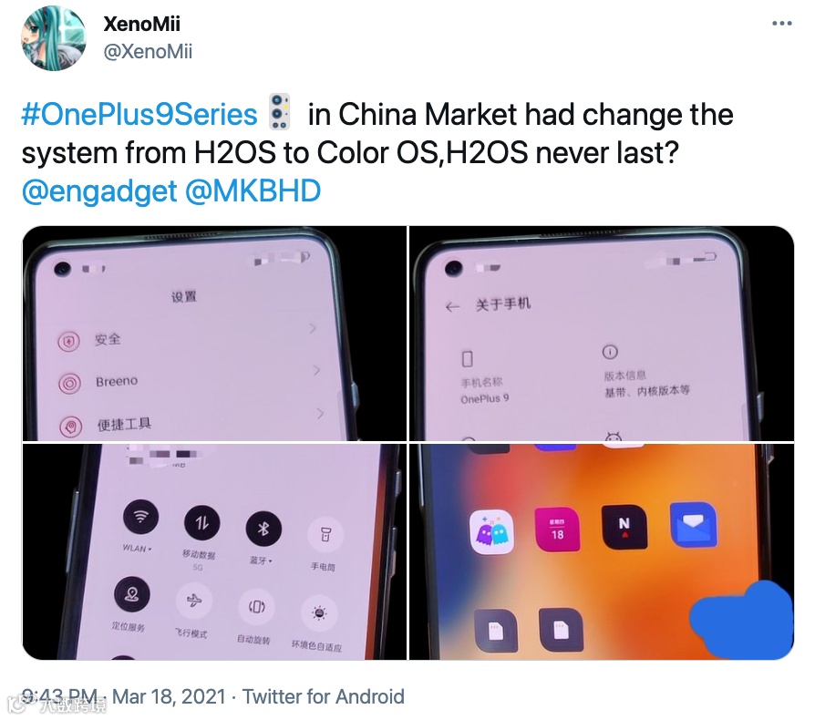 另一边关于外界关心的系统UI部分,今天有海外网友分享了一组一加9的真机谍照(虽然是海外网友,但界面是中文,所以应该是国行版真机),相关界面显示其内置的系统UI正是早前传闻的ColorOS 11。