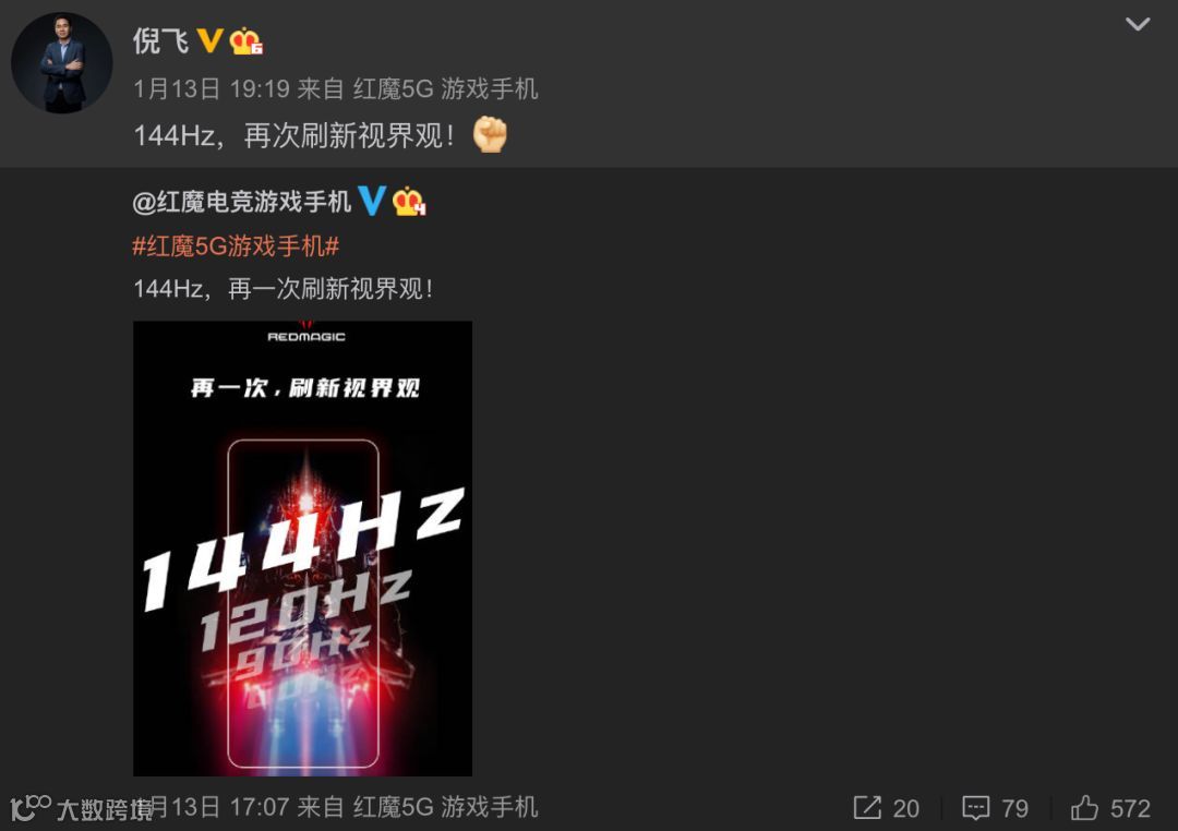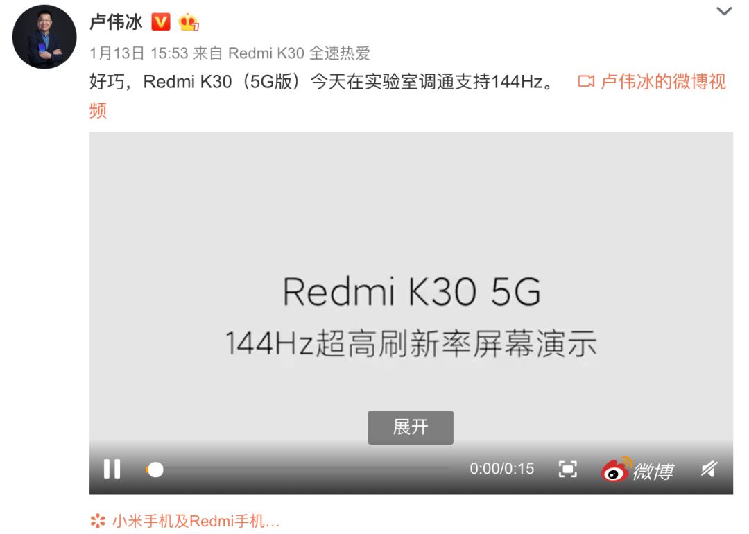 昨日,一加手机宣布了2020年新机的屏幕规格:2K+超清分辨率、120Hz屏幕刷新率等,随后努比亚倪飞晒出了自家红魔新机的144Hz刷新率,没想到随后Redmi和小米也来了。