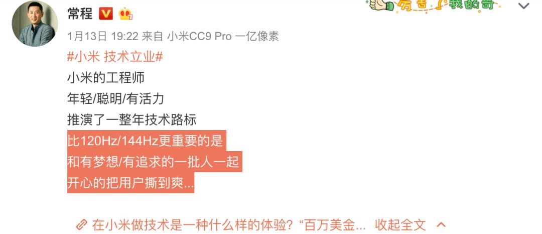 最搞事情的是,就在自家人卢伟冰秀完K30 5G版144Hz模式后,小米副总裁常程:「比120hz和144hz更重要的是......开心的把用户撕到爽」还晒出了小米显示触控部2020技术路标,预计小米10系列也少不了120Hz高刷新率。