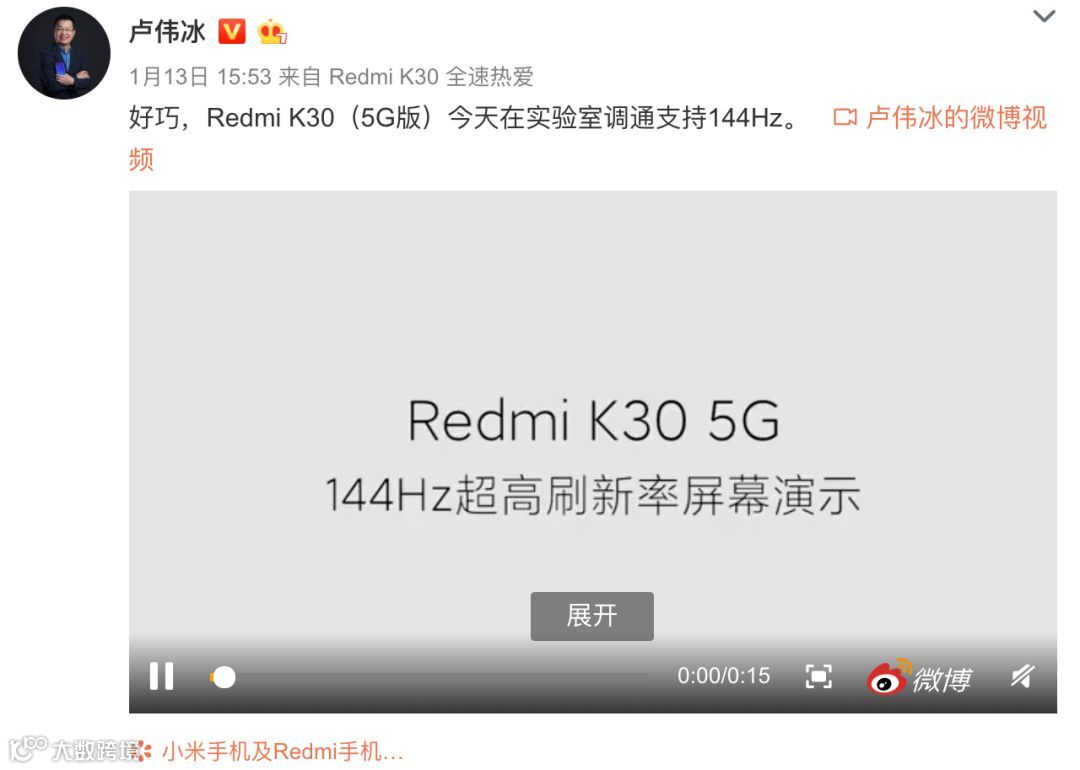Redmi卢伟冰就在一加和努比亚宣布过后,也晒出了自家Redmi K30 5G版在实验室调通支持144Hz超高屏幕刷新率的演示视频。作为补充,K30系列主打的是120Hz刷新率,144Hz应该是超频模式,暂时不清楚是否会在日后推送中提供给用户使用。