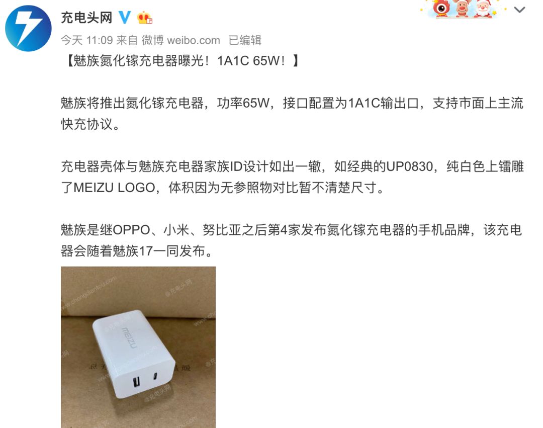 细节上,魅族这款65W GaN充电器 提供一个Type-C口和一个1个USB-A口,支持市面上PD、QC、FPC等主流协议,其也是继OPPO、realme、小米、红魔后被曝光的第5家提供氮化镓充电器的品牌。