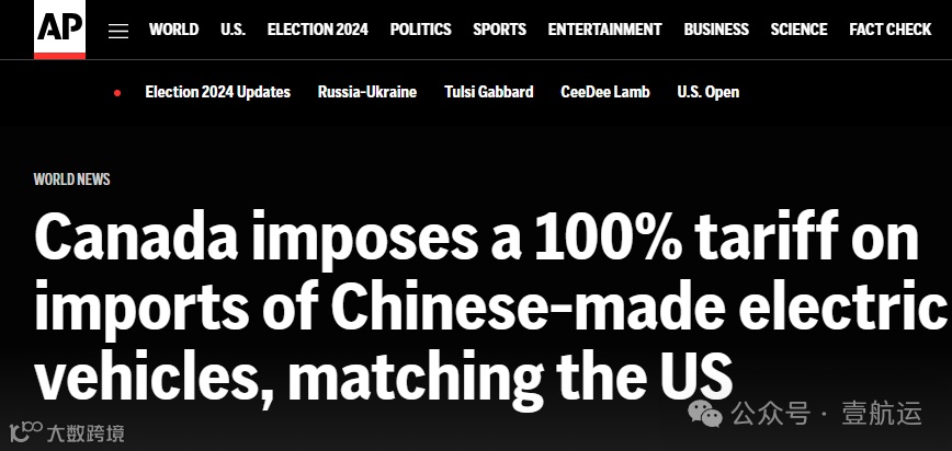 当地时间周一(8月26日),加拿大总理特鲁多宣布,加拿大将对从中国进口的电动汽车征收100%的关税,同时对从中国进口的钢铁和铝征收25%的关税。