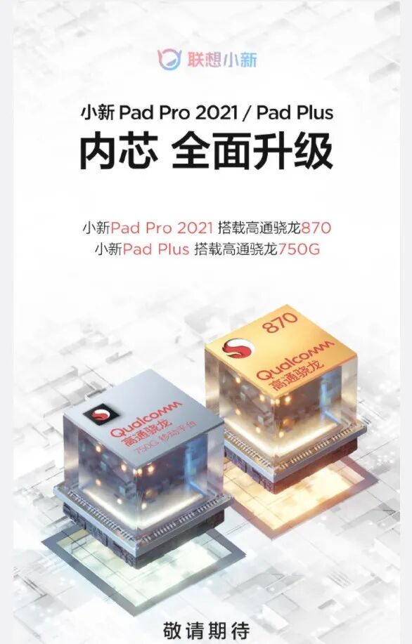 日前联想预热了三款平板新品 —— 小新Pad Pro 2021、小新Pad Plus、YOGA平板,其中小新Pad Plus将搭载高通骁龙750G处理器,而小新Pad Pro 2021将搭载高通骁龙870处理器,YOGA平板暂无明确介绍处理器,这两天小新Pad Pro和YOGA平板都有更多消息出来。