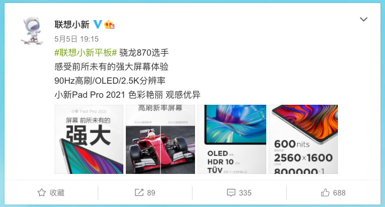 作为补充,小新Pad Pro 2021应该也是全球首款骁龙870平板,价格方面,去年联想发布的小新Pad Pro,搭载骁龙730G处理器,11.5英寸2560×1600分辨率的OLED全面屏,350nit 亮度,6GB LPDDR4X 内存+128GB首发价1999元。以此为参考,或许骁龙870款平板售价可能在3K左右?🤔