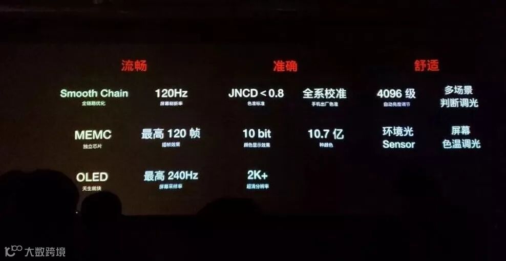 据官方预热,2020年一加新机屏幕将采用2K+超清分辨率的OLED屏,E3级别以上的发光材料,120Hz屏幕刷新率,业内最高240Hz触控采样率,10 bit颜色显示效果,4096级自动亮度调节,全系校准精密色准,JNCD色彩偏移程度小于0.8,自动色温感应等等。