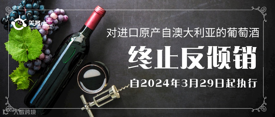 根据《中华人民共和国反倾销条例》第五十条和《中华人民共和国反补贴条例》第四十九条的规定,商务部向国务院关税税则委员会提出取消反倾销税和反补贴税的建议,国务院关税税则委员会根据商务部的建议作出决定,自2024年3月29日起,终止对原产于澳大利亚的进口相关葡萄酒征收反倾销税;终止征收反倾销税后,不征收反补贴税。
