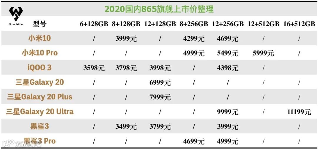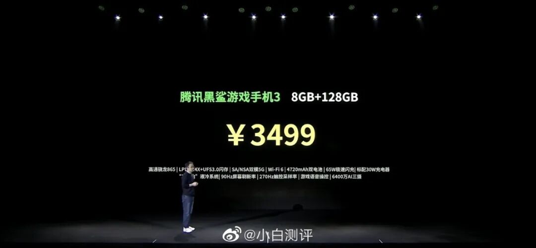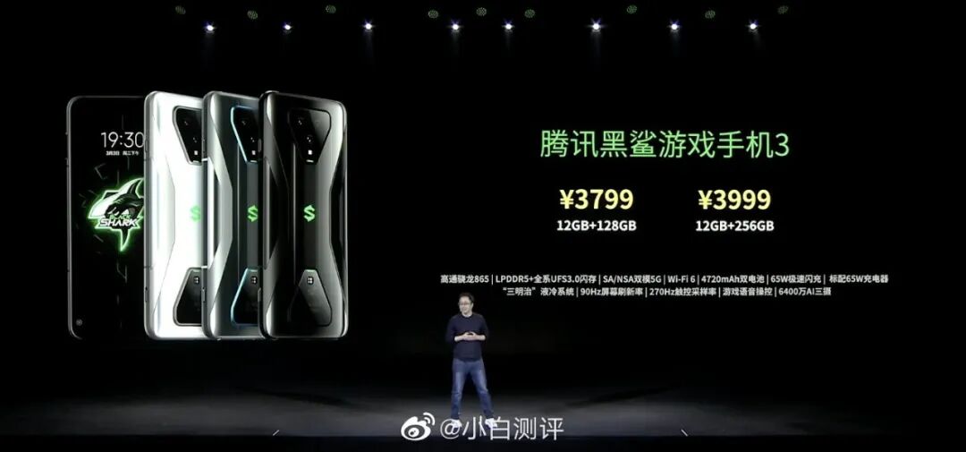 黑鲨3:最低配8+128GB 售价3499元(LPDDR4x内存+30W充电器 也是目前最便宜的865);LPDDR5+65W充电器的12+128GB 售价3799 元、12+256GB 售价3999元,目前已经开启预售,将于3月6日上午10点正式开卖;