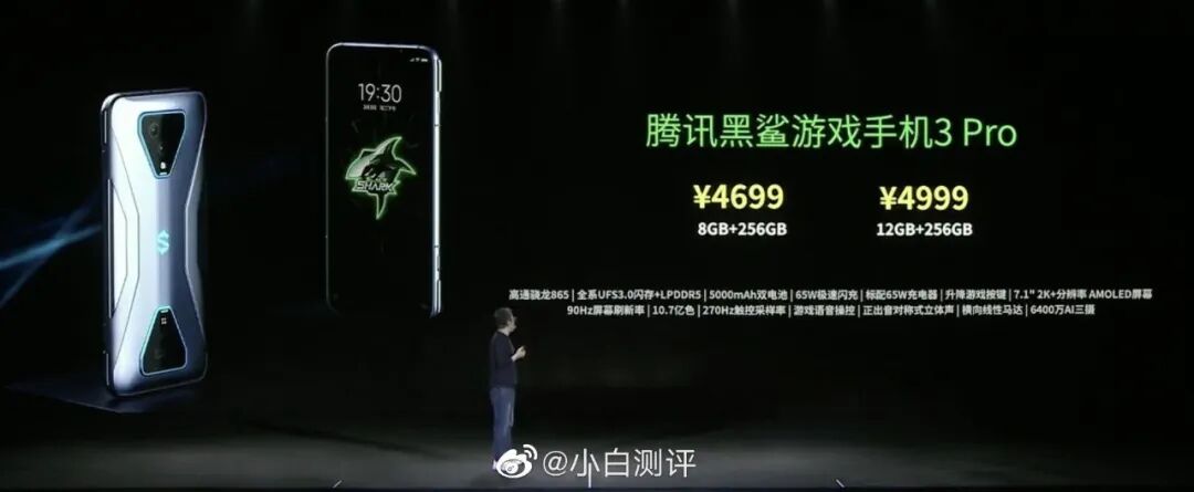 黑鲨3 Pro:8+256GB售价4699元;12+256GB售价4999元;将于3月10日10点开启预售,3月17日10点正式开卖。