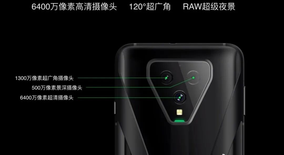 相机部分,黑鲨3和黑鲨3 Pro一样:前置2000万像素 F/2.0,支持4K60帧视频拍摄,后置三摄6400万像素 F/1.8主摄(三星GW1)+1300万像素F/2.2超广角镜头+500万像素 F/2.2景深镜头。