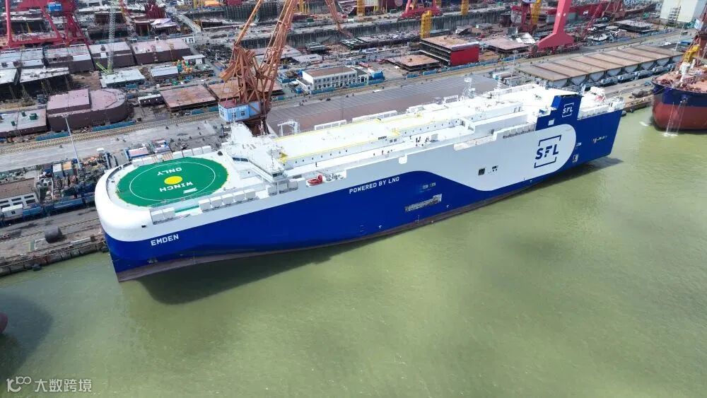 2023年9月12日,广船国际建造的7000车双燃料汽车运输船交付(无人机照片)。(中国船舶集团广船国际供图)