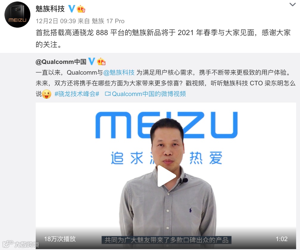 核心配置上,据悉魅族18系列将搭载骁龙888处理器,3C认证显示两个型号分别配备4000mAh+最高36W充电、4500mAh+最高40W充电,均「不标配电源适配器销售」。官方预告将于2021年春季发布,民间爆料称或于3月26日发布。等官宣就是了,届时还会有魅族Watch一起见面。