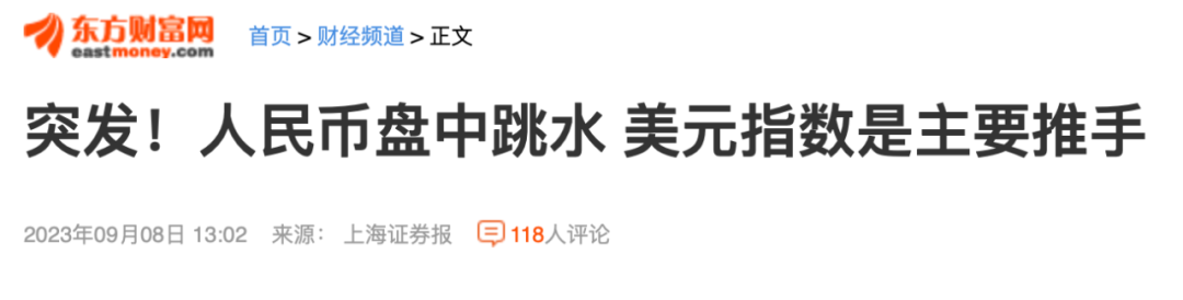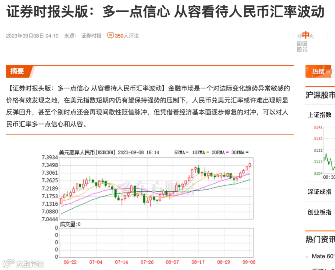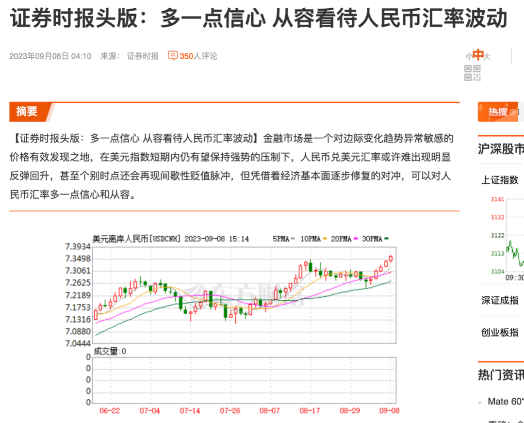 上海证券报也在9月8日关注了人民币美元汇率波动问题。