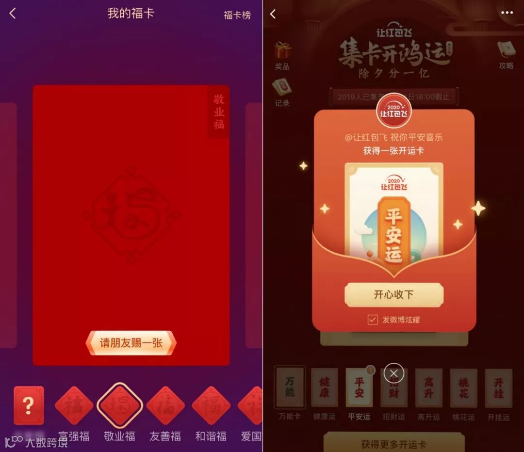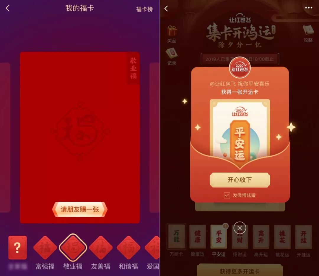与此同时,微博 & 让红包飞 搞的「集卡开鸿运,除夕分一亿」活动已经开始了![[草泥马]](https://cdn.10100.com/content/20251207/9218cf3a-d388-48e3-a65d-21b58bc9f6c2.png?x-oss-process=style/wmlogo)