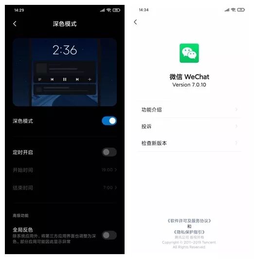不过IT之家和部分网友反应下载了官网微信 7.0.10 for Android 64位正式版后发现,微信无法再适配全局夜间模式,如果想继续体验微信安卓版黑暗模式,就只能回到最初的微信7.0.10内测版。
