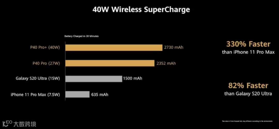 其中华为P40 Pro+带来的40W无线闪充也是目前功率最快的无线闪充,不过海报显示其30分钟充入2730mAh,对比P40 Pro的27W无线充2352mAh,差距似乎不大。