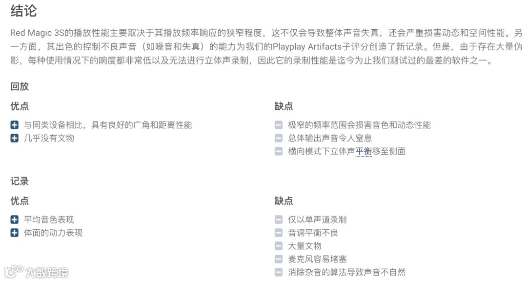 最终DxOMark表示红魔3S在DxOMark音频榜综合得分50分,在DxO目前测试音频的机子中位列倒数第三。