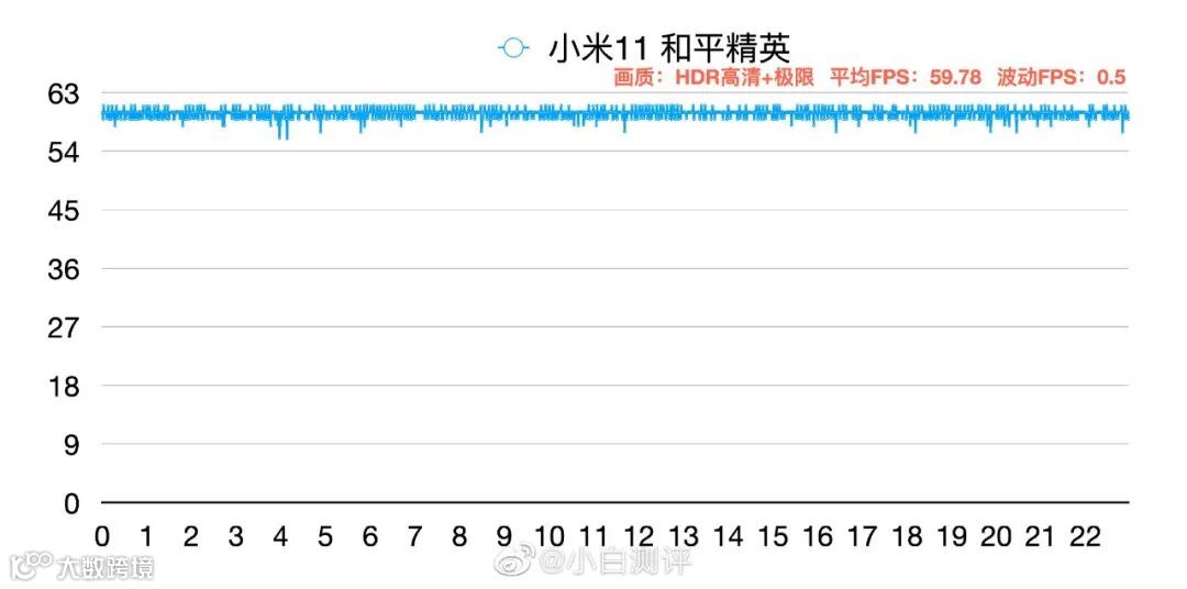 ④游戏发热:小米11 一小时和平精英HDR高清+超高60帧,机身最高温度为44.1℃(此项测试条件:环境温度25℃±1℃);游戏帧率:小米11 和平精英HDR高清+极限60帧,平均帧率59.78,帧率波动0.5。